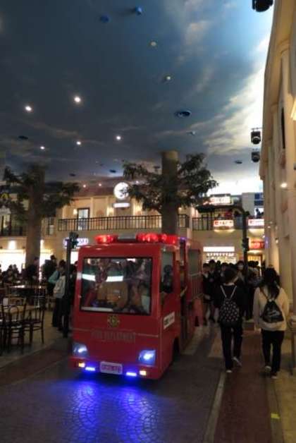 バスや救急車、消防車が走り、時刻によっていろいろな出来事が起こります。