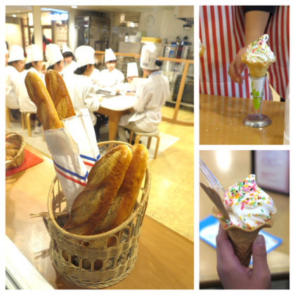 パンにソフトクリーム、寿司、ピザなどなど、食べ物がもらえる体験コーナーは大人気です。