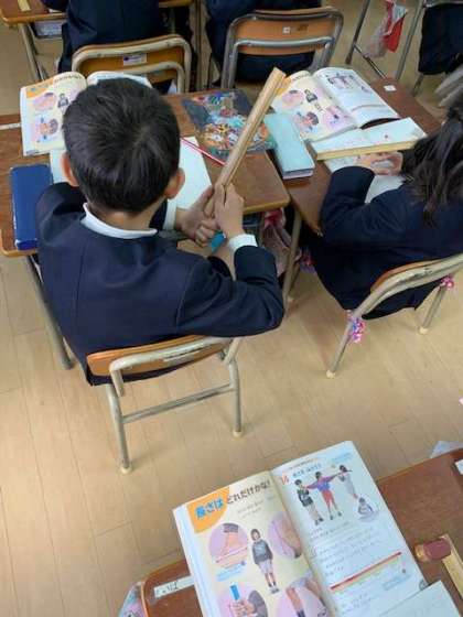 子どもたちは、先生の靴を長さを知ると30cmということがわかりびっくりしていました。
