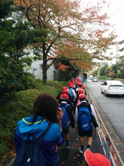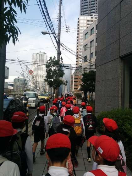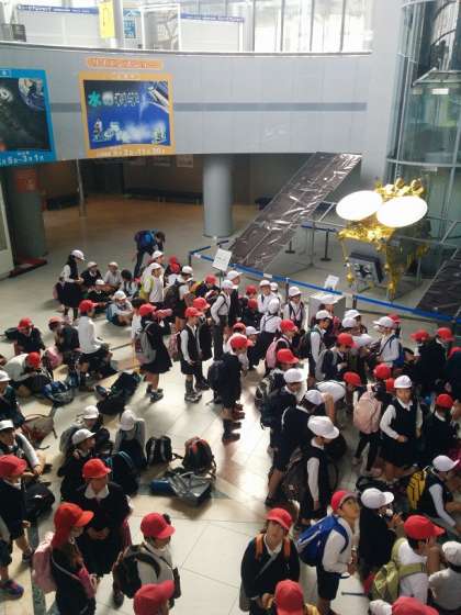 朝方の雨もあがり、4年生は元気よく、秋の遠足で市立科学館に出かけました。