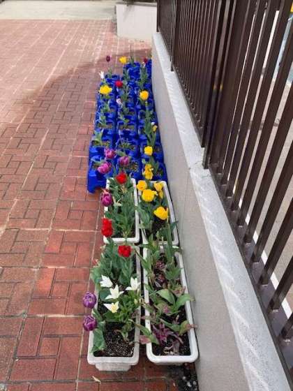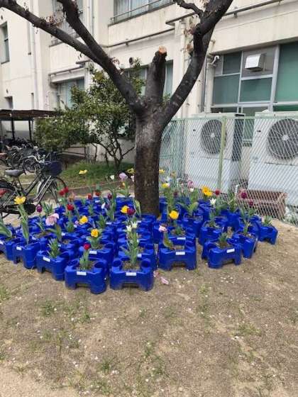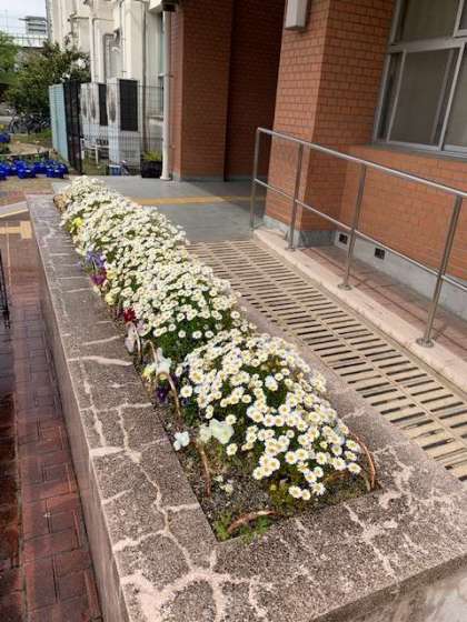 分校の植物にも水をあげ、きれいな花を維持しています。