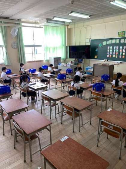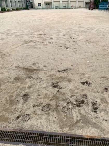 まずは、鉢に土を入れます。子どもたちは、担任の先生の話を静かに聴き、鉢に土を入れました。なかなかこぼさないで入れるのが、難しい子どもたちも多くて、子どもたちの作業した運動場には、土のこぼれたあとが見られました。またこれからメキメキと上手に行動できるようになると思います。
