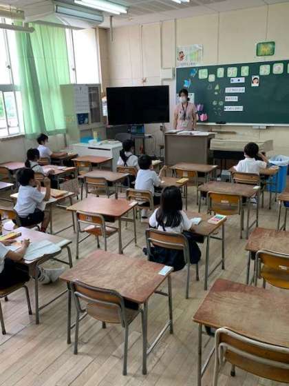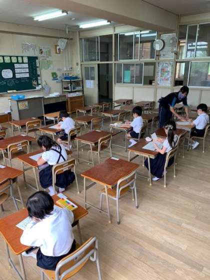 子どもたちは初めて使うお道具箱の中身を担任の先生と一緒にあるかないか確認しました。先生の話を聞いてすぐ行動している姿が印象的です。