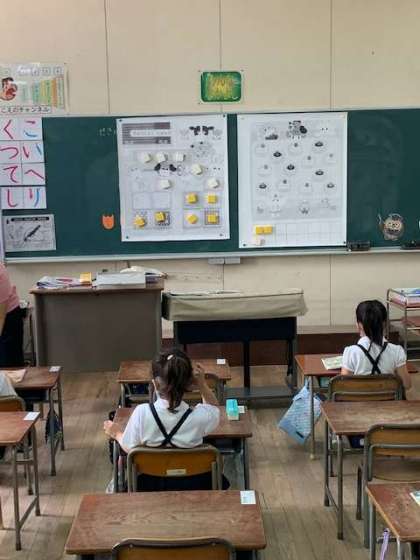 算数科では、ブロックを使ってどちらがどれだけ多いのかという学習をします。