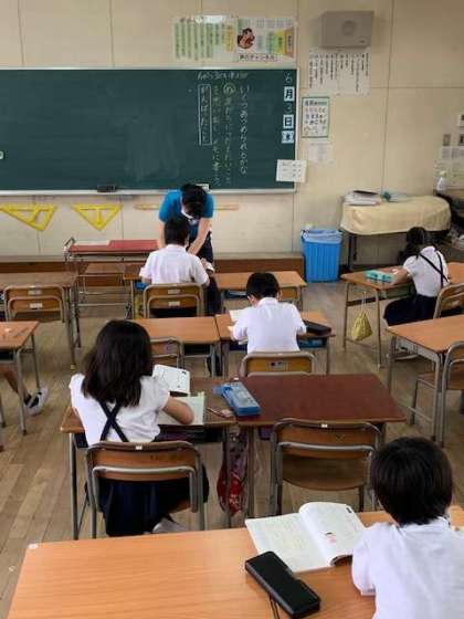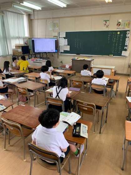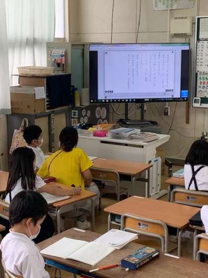 他のクラスの国語科では、友だちに伝えたいことを考えよう。と子どもたち一人一人が、自分のがんばったことやうれしかったこと、楽しかったことなどをメモに書き出します。なかなか難しいらしく…。子どもたちは、頭を悩ましていました。