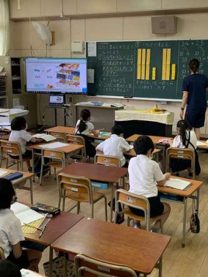 算数科では、「34円のガムと25円のあめを買うのに、合わせていくらになりますか」という問題をどう考えたらよいのかについて考えます