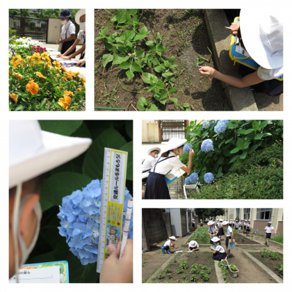 3年生は、学習園や正門付近で、植物や昆虫の観察をしました。