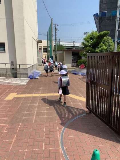 朝の登校の様子です。まだまだ完璧ではありませんが、子どもたちの中でも友だちとの間隔を空けて歩くということを意識することができてきています。