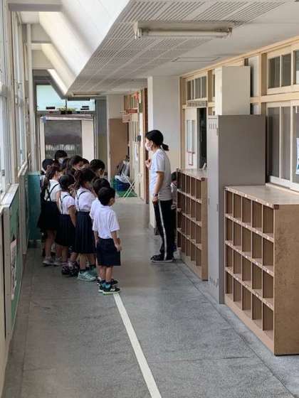 1年生が分校の中には、どんな教室があるのかを知るために分校の中をまわります。