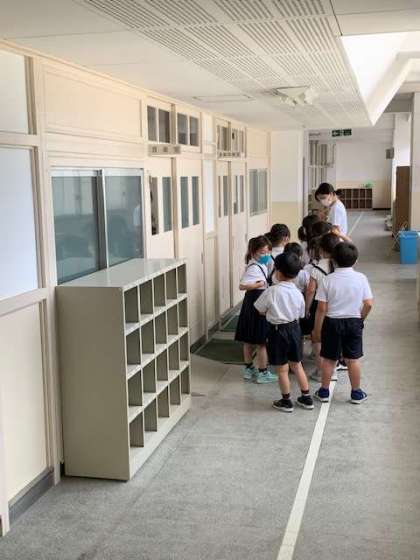 例年ならば、2年生に手を引かれて、連れてまわってもらうのですが、今年のこの状況では難しく先生とたんけんです。