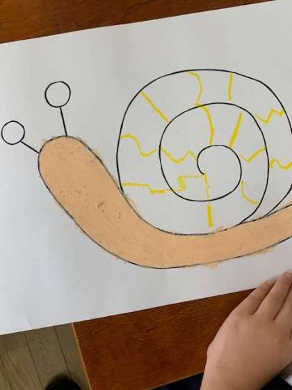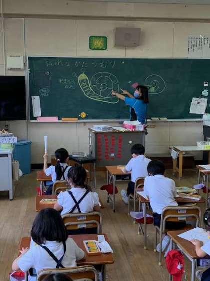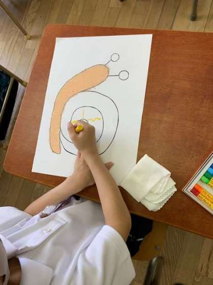 一年生の図画工作科では、「おしゃれなかたつむり」を描いています。