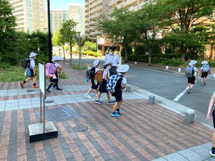 子どもたちは、横切る自転車や自動車に気を付けて横断することができていました。