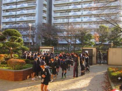 各クラスが交代で、正門前に立ち、登校してくる子どもたちに元気よく「おはようございます!」と大きな声であいさつをかわしています。