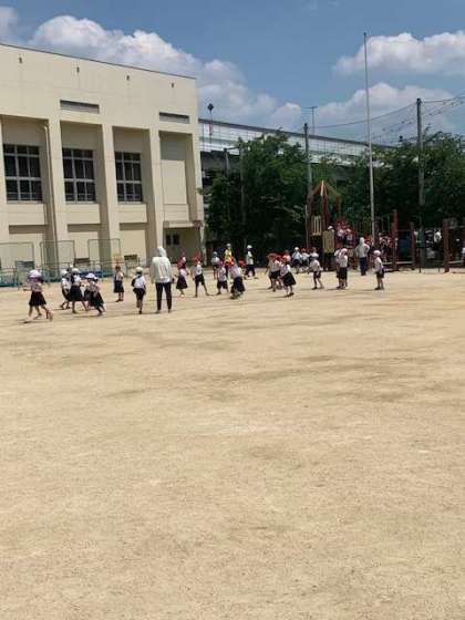 一年生の休み時間の過ごしかたです。今日の休み時間は、ドッジボールに挑戦です。