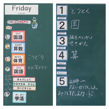 あるクラスでは、黒板の端にその日の予定を書いていました。