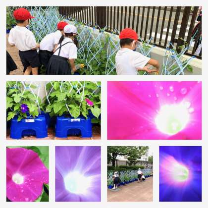 同じ日に小学校生活をスタートしましたが、1人ひとりに個性があり、好きなことも異なります。そんな1人ひとりの個性を大切に伸ばしていければという思いでアサガオを眺めていました。