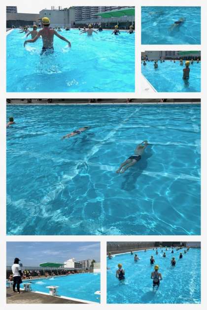 6年生の水泳指導、昨日は1組と4組、今日は2組と5組が入りました。