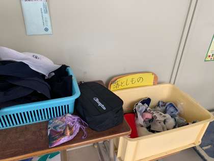 お子さんが落とし物をした時、落とし物入れの確認をお願いしたいのですが、貴重品の場合は職員室まで確認に来るよう、お子さんへのお声がけをお願いします。