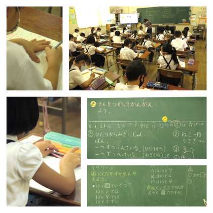 1年生の算数の学習では、10より大きい数字や数直線を使って数字の大きさを考える学習をしていました。