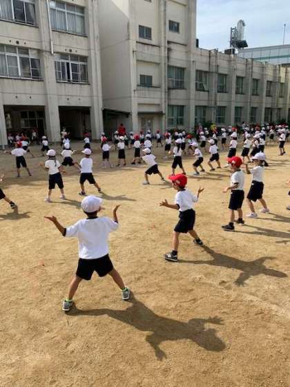 それでも、準備体操のダンスを一生懸命に踊ります。1年生の動きを見ていると笑顔になります。