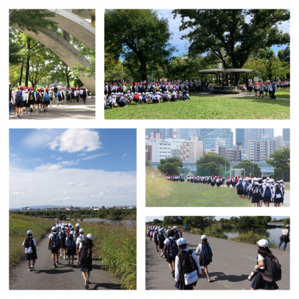 城北公園を後にして、淀川沿いを歩きます。子どもたちからは梅田のビル群を見て、「大阪って都会なんや」という感想が聞こえてきました。