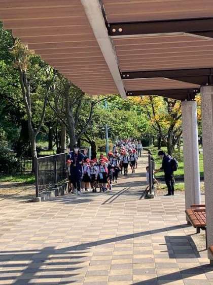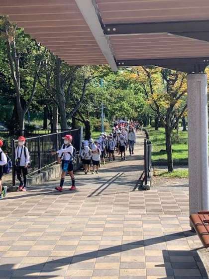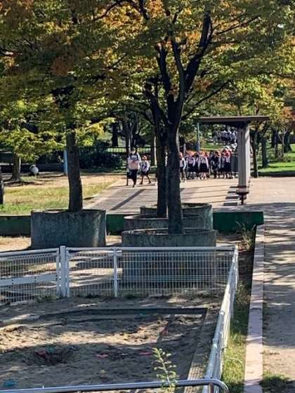 4クラスずつ、公園で活動するグループと秋を見つけるグループとに分かれます。