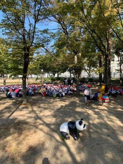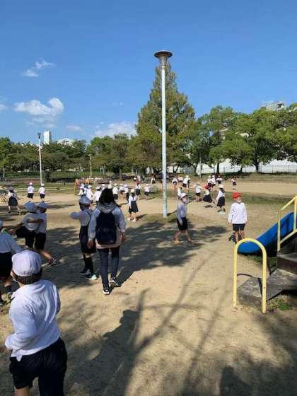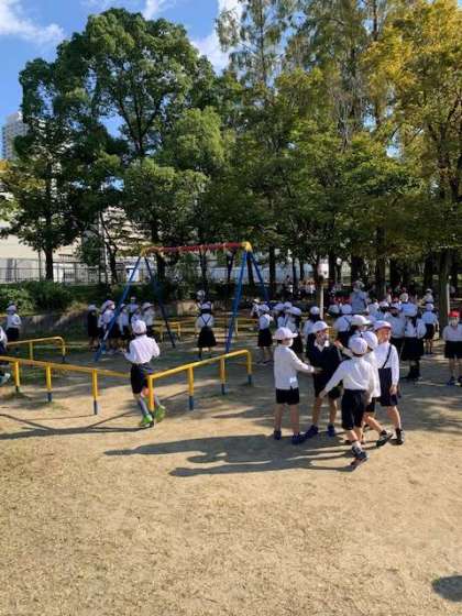 閑散とした公園が2年生の到着で、あっという間に子どもたちでいっぱいになります。