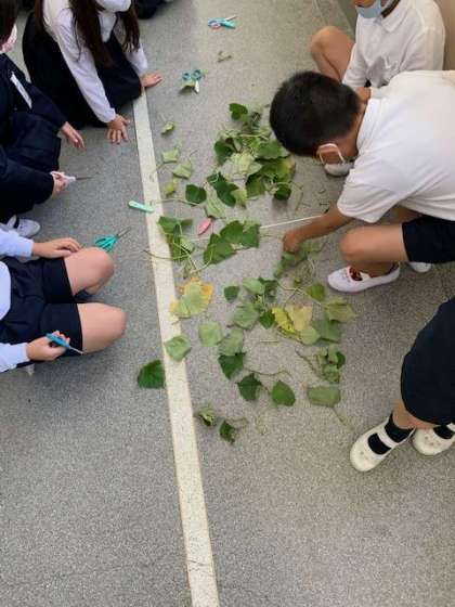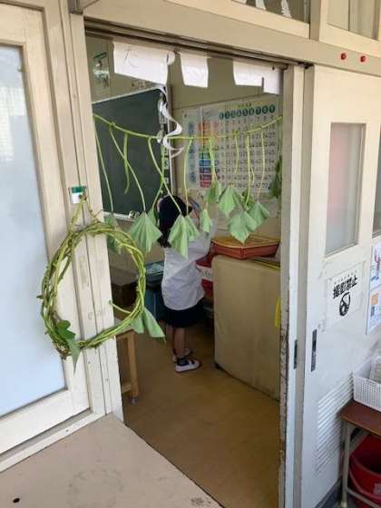6月に植えたさつまいもが収穫の時期になりました。長く伸びたつるや大きくなった葉を観察します。