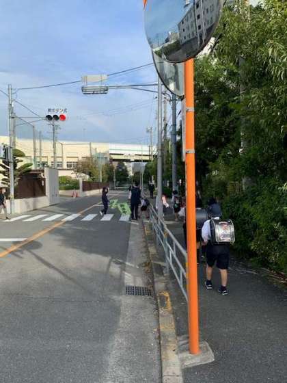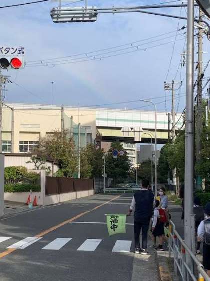 少し見にくいので、「にじが、にじんでる」なんて言いながら、元気に登校していました。