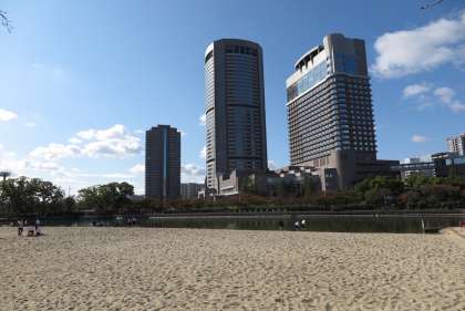 桜ノ宮ビーチと造幣局博物館に分かれます。2・5・6・8組が桜ノ宮ビーチに到着。1・3・4・7組は造幣局博物館に向かっています。