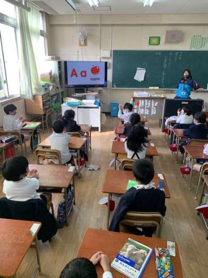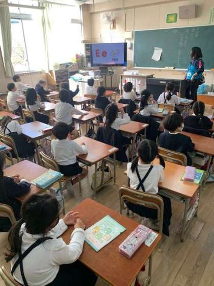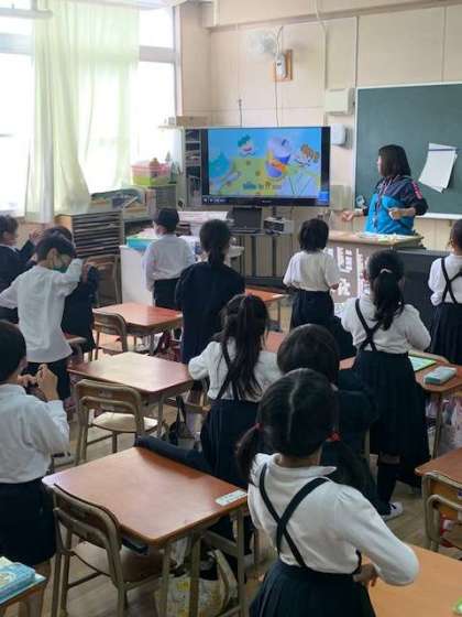 1年生のある教室では、英語の音が流れたら大喜びです。