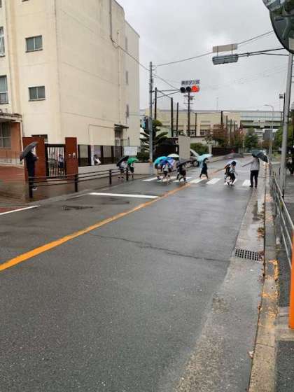 今日は朝の朝会で話をし、学級でも話をしてもらいました。天気が雨だったこともあり、帰り道を走る子どもたちは少ないように感じました。