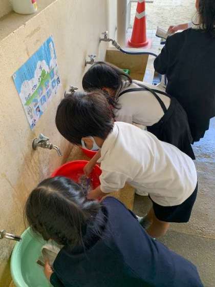 今週は、先週しなかった4クラスの子どもたちが上靴洗いに挑戦します。