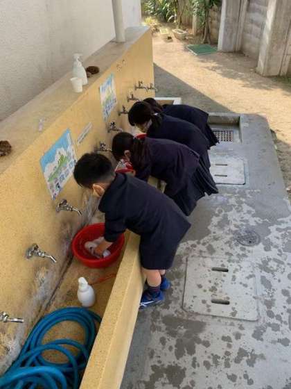 歯ブラシを使って細かいところまでゴシゴシ磨きます。