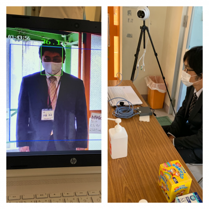 入口には、カメラで検温ができるシステムを置き、来校者の健康観察に使用しました。