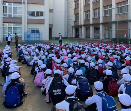 今日は3年生の校外活動です。一時期、冷え込みが厳しくなったことがありましたが、今日は最高気温が25度を超える予想。ぽかぽか陽気の中、城北公園へ向けて出発します。