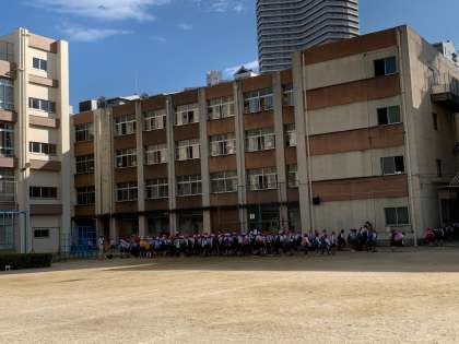 学校に到着。子どもたちはよく歩きました。これから約1時間を学校で過ごし、15:20ごろに下校します。
