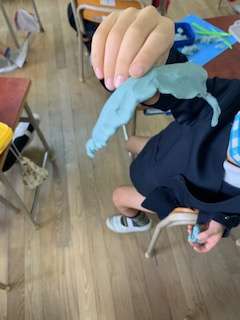 教室に入ると、みんな「見てみて」といろんな趣向を凝らした作品を見せてくれました。リュウグウノツカイ、ハンバーガー、パンケーキ、アイスクリームなどなど2年生になると細かい部分までよく考えて作りあげてきます。