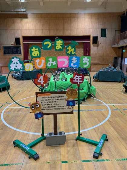 4年生は木や枝、どんぐりや葉等を使って一人一人が個性あふれる作品となっています。