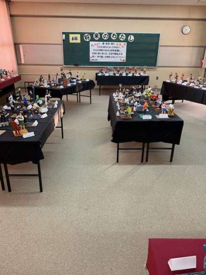 6年生は、「将来のわたし」をテーマに自分の未来を想像して紙粘土で自分を作り上げました。