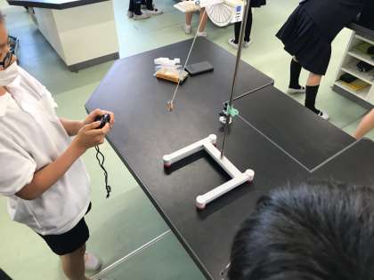 5年生では理科の実験で、「振れ幅を変えると,1往復する時間は変わるのだろうか」というめあての実験を行いました。