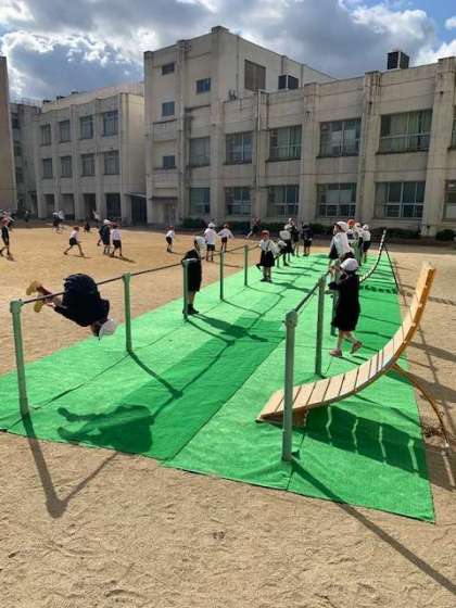 子どもたちは、新しい環境がうれしいようで、安心して鉄棒に取り組んでいます。