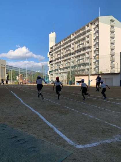 先生からの「位置について、用意」のかけ声にとってもかっこよく走り出します。
