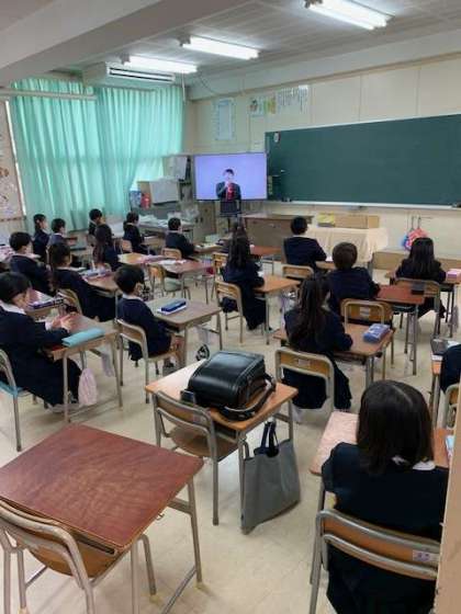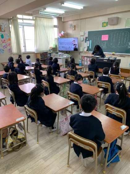 分校では、コロナ禍の中で本校と同じく放送で始業式を行いました。