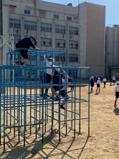 今までは、休憩時間に外遊びをする際は、熱中症対策としてマスクの着用は不要としていました。しかし、最近の新型コロナウイルス感染者の増加を受けて、休み時間の外遊びもマスク着用するように子どもたちに話をしました。