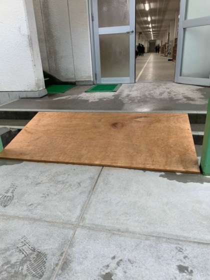 一階のいきいき教室から体育館に抜ける通路にスロープを管理作業員に作成・設置してもらいました。