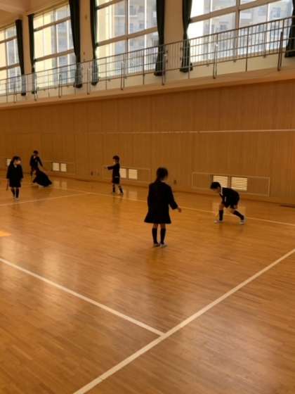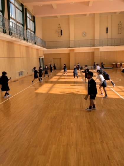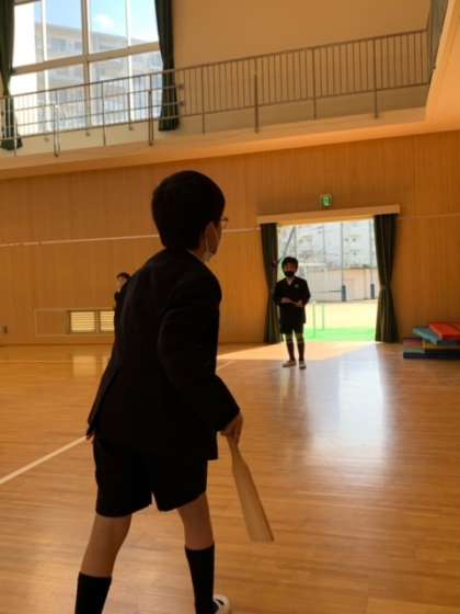 友だちとペアで取り組むのですが、なかなかラリーにはなりません。それでも、子どもたちは楽しそうです。