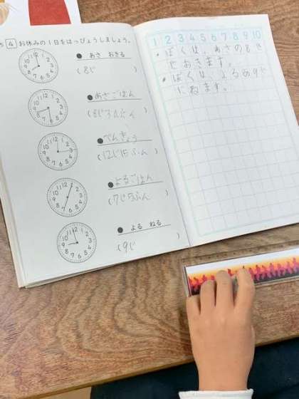 最近では、デジタル表示が多くなり、なかなかアナログの時計の読み取りが難しい子も増えてきています。この単元の学習でしっかりと身につけてほしいと思います。