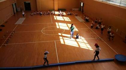 体力づくりにと購入した新しいブロックマット。今日は2年生がサーキットとして活用しました。