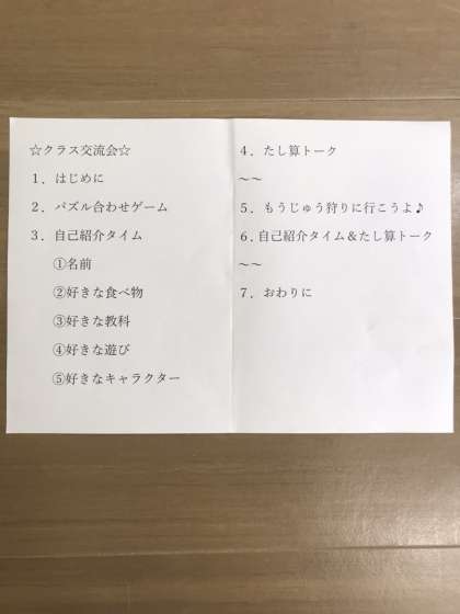 新しい学年になる時に、少しでも同じ学年のお友だちを知ろうと4年生が多目的室で交流会をしました。